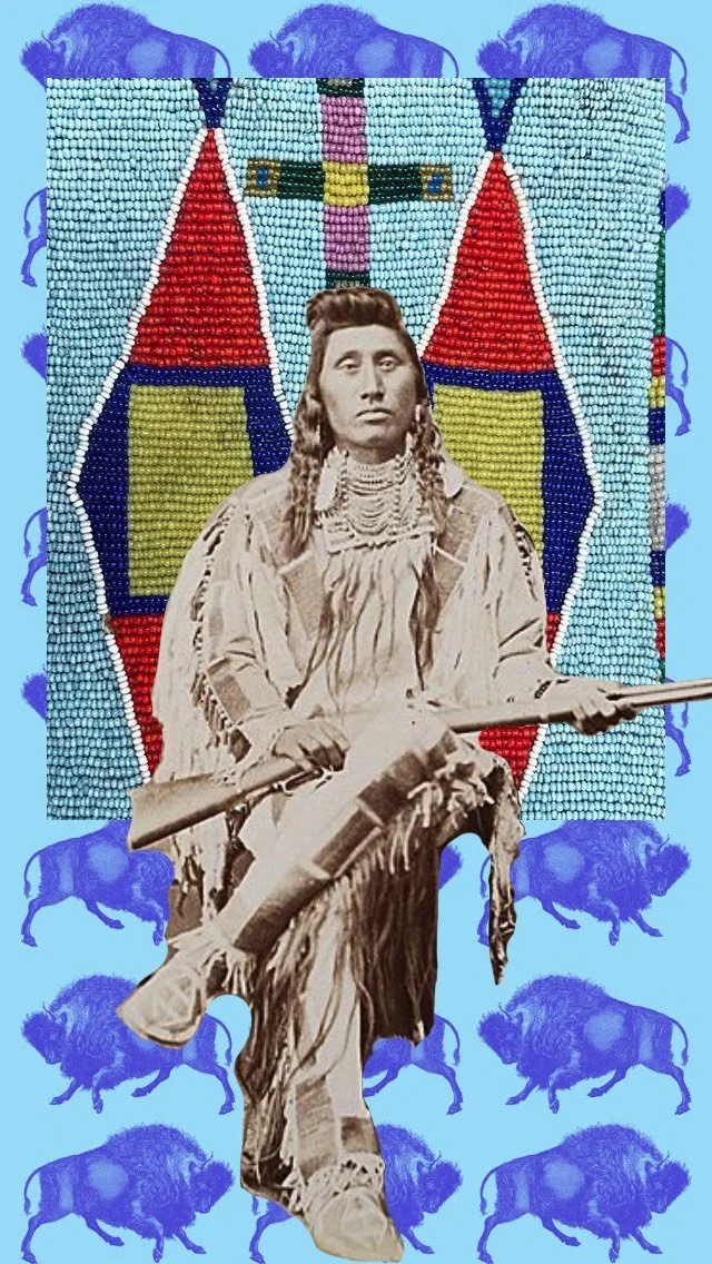 “Digital Collage piece titled Déaxitchish (Chief Pretty Eagle), my grandpa of many Greats. I intended to highlight the selfless role a Chief takes on to provide for and protect the people.” -KamiJo Whiteclay